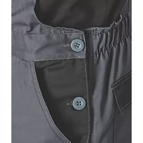 Workwear overall with multiple pockets for workday essentials, including bottom-loading pockets for knee pads. Features elasticated back and adjustable straps for extra comfort.