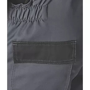 Workwear overall with multiple pockets for workday essentials, including bottom-loading pockets for knee pads. Features elasticated back and adjustable straps for extra comfort.