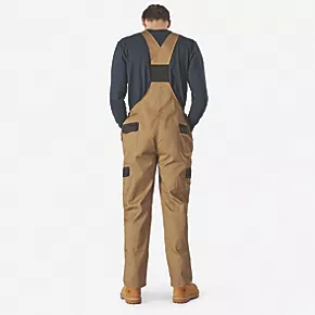 Workwear overall with multiple pockets for workday essentials, including bottom-loading pockets for knee pads. Features elasticated back and adjustable straps for extra comfort.
