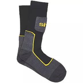 Black / Grey. Durable and comfortable work socks. Reinforced toe protection for steel toe cap footwear.